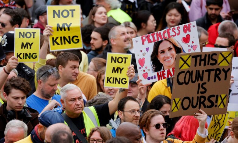 Републиканците се заканиха да организират най-големия протест срещу британски монарх в съвременната история и протестиращите освиркаха крал Чарлз и кралица Камила по пътя им към Уестминстърското абатство, както и по време на публичното предаване на службата по големи високоговорители.