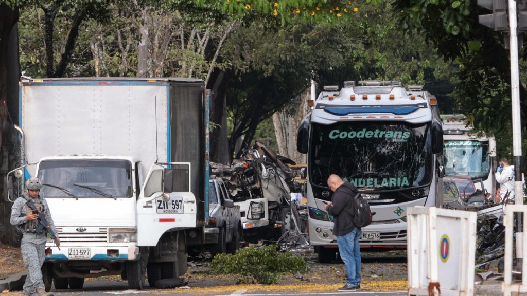 При първата атака, най-малко шестима души бяха убити, а 60 – ранени, при атентат с камион, натъпкан с експлозиви, пред военна база в Кали, на югозапад. Кметът на третия по големина колумбийски град, Алехандро Едер, каза, че това е „наркотерористична атака“.