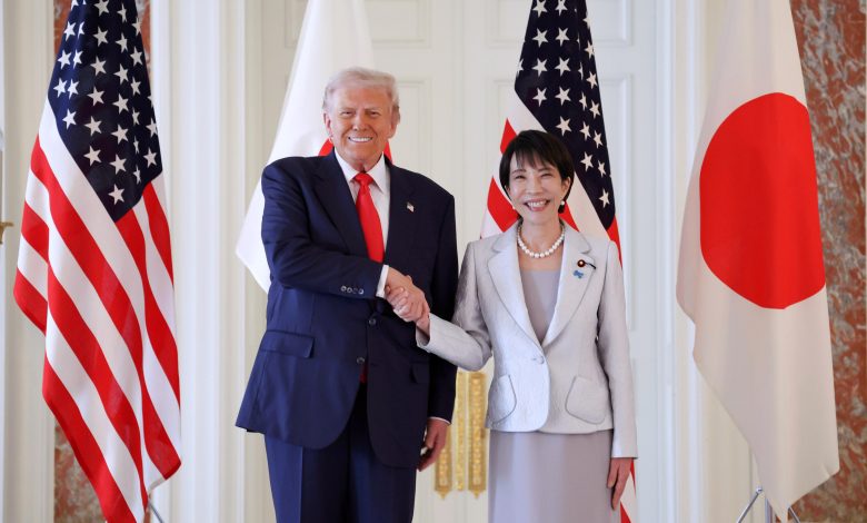 По време на официалната среща японският премиер Санае Такаичи, която в Япония се смята за политически наследник на убития Шиндзо Абе, повтори стила на своя предшественик, организирайки луксозен прием и аудиенция при японския император за президента на САЩ Доналд Тръмп.