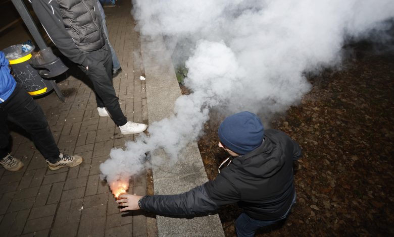 Част от групата обърна и контейнери с боклук. А малко по-късно ги запали и ги бутна към кордона.