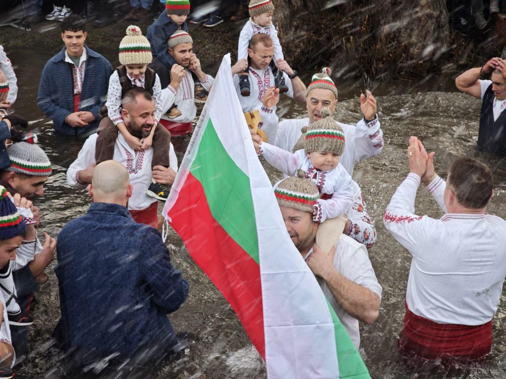 Стотици мъже и тази година се включиха в традиционното мъжко хоро на Богоявление в студените води на река Тунджа в Калофер.