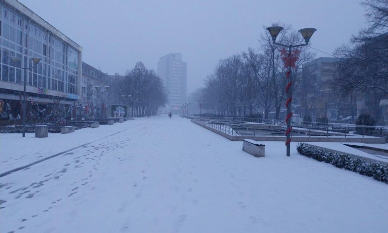 През нощта валя дъжд, който в ранните часове премина в сняг и бързо натрупа. Снегорините са по главните улици и опесъчават, за да минава градският транспорт.