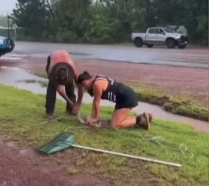 Влечугото, което било забелязано по-рано от мъж, косещ тревата си, било задържано и отстранено от магистралата и жилищните райони. Експертите отбелязват, че по време на дъждовния сезон крокодилите често пътуват на дълги разстояния в търсене на храна и партньори.