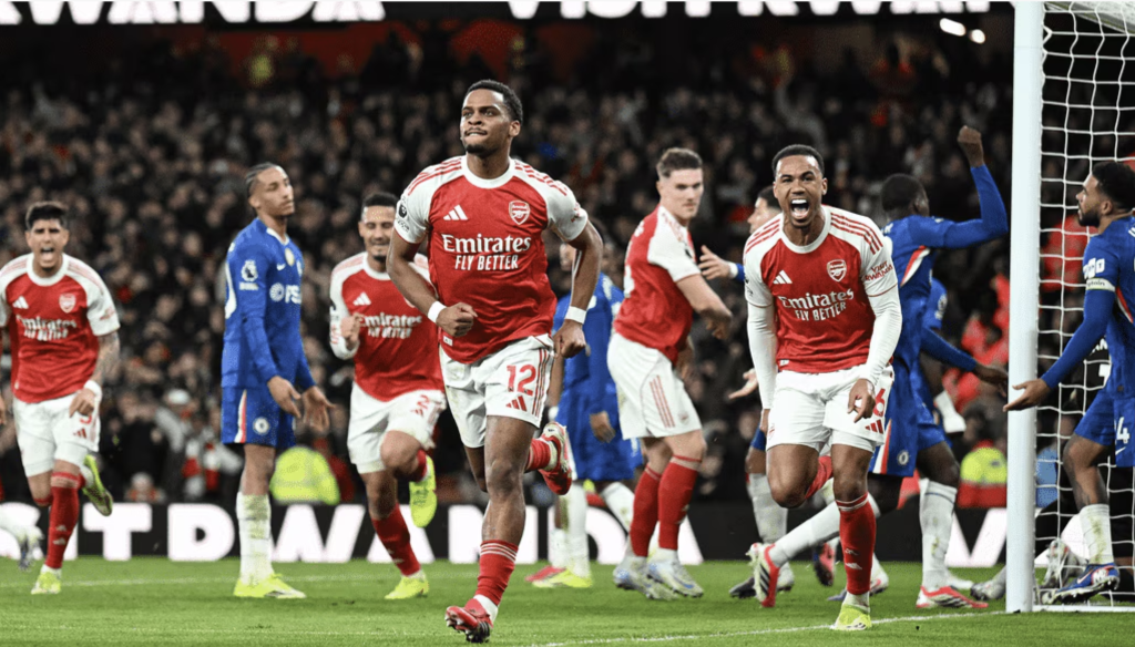 Юриен Тимбер вкара решаващия гол в 66-ата минута след центриране от ъглов удар на Деклан Райс и Арсенал стигна до трите точки в труден мач. По-рано Уилям Салиба изведе домакините напред в 21-та минута отново след корнер, а Пиеро Инкапие си вкара автогол малко преди почивката и Челси изравни.